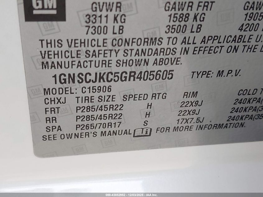 2016 CHEVROLET SUBURBAN 2016 року Бензин, 5.3, , vin - 1GNSCJKC5GR405605 из США