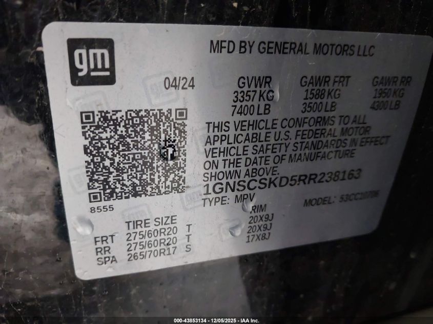 2024 CHEVROLET TAHOE 2024 року Бензин, 5.3, , vin - 1GNSCSKD5RR238163 из США