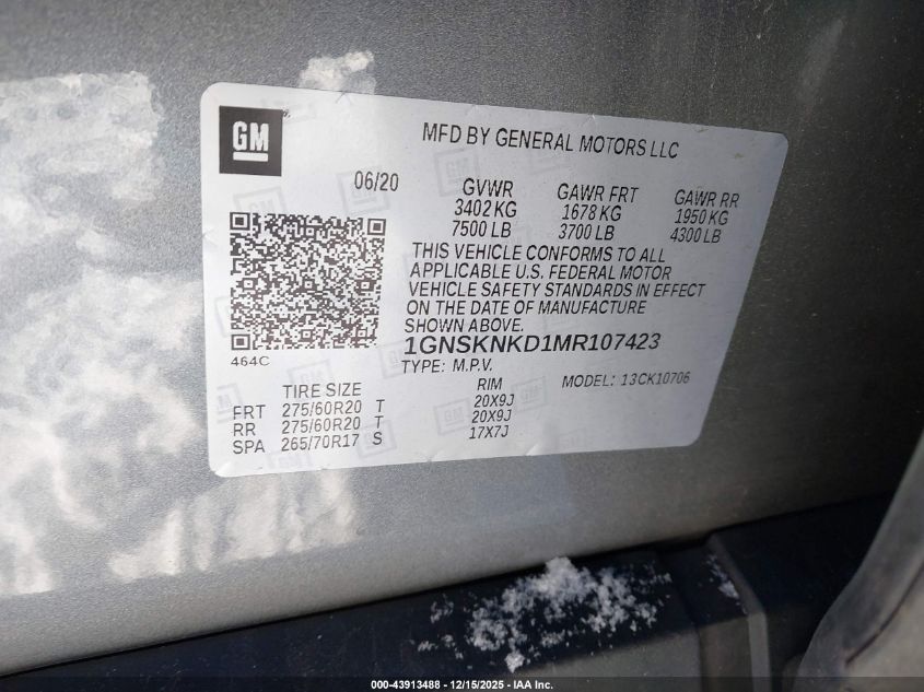 Цвет СерыйЦилиндры 8Привод Полный приводVIN 1GNSKNKD1MR107423Состояние НеизвестноПовреждения Неизвестно AutoRIA