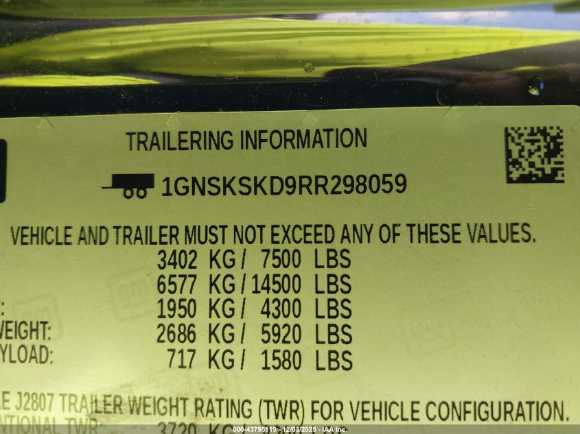 Цвет ЧерныйЦилиндры 8Привод Полный приводVIN 1GNSKSKD9RR298059Состояние Заводится и едет (проверено)Повреждения Левая сторона AutoRIA