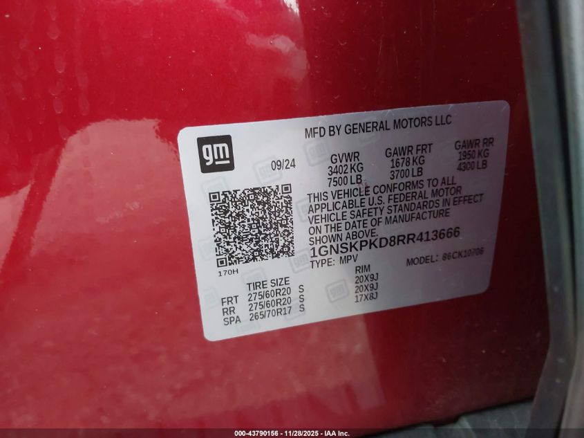 2024 CHEVROLET TAHOE 2024 року Бензин, 5.3, Полный привод, vin - 1GNSKPKD8RR413666 из США