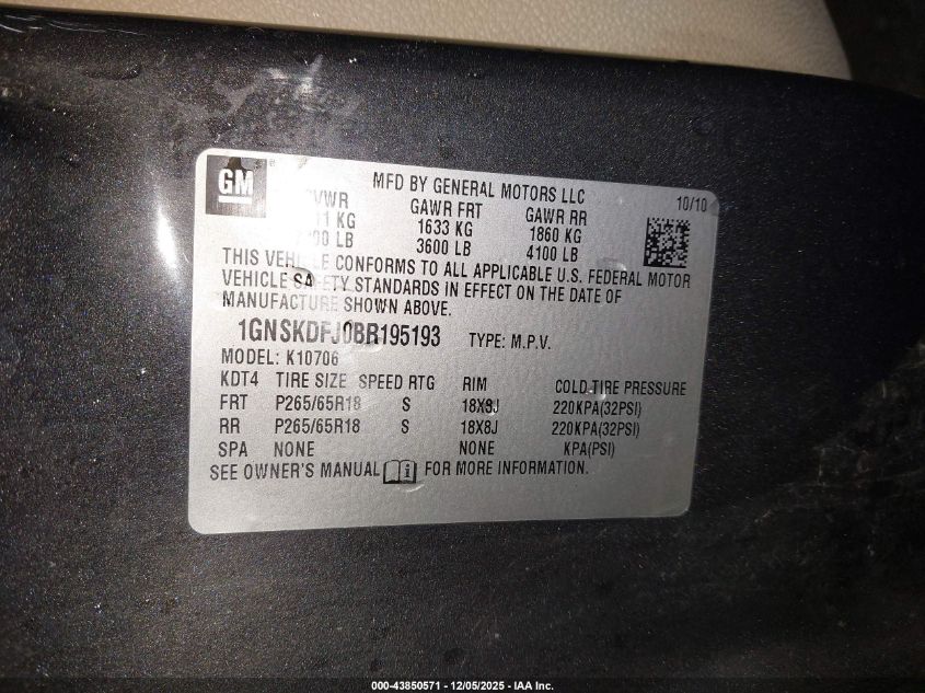 Цвет СерыйЦилиндры 8Привод Полный приводVIN 1GNSKDFJ0BR195193Состояние СтационарноПовреждения Правая сторона AutoRIA