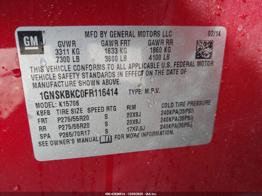 2015 CHEVROLET TAHOE 2015 року Бензин, 5.3, Полный привод, vin - 1GNSKBKC0FR116414 из США