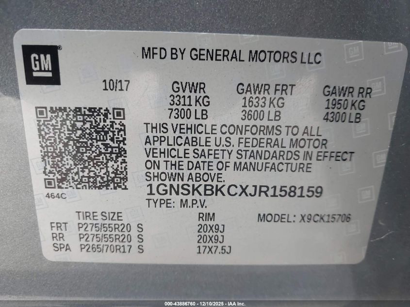 Цвет СерыйЦилиндры 8Привод Полный приводVIN 1GNSKBKCXJR158159Состояние Заводится и едет (проверено)Повреждения Передняя или задняя AutoRIA