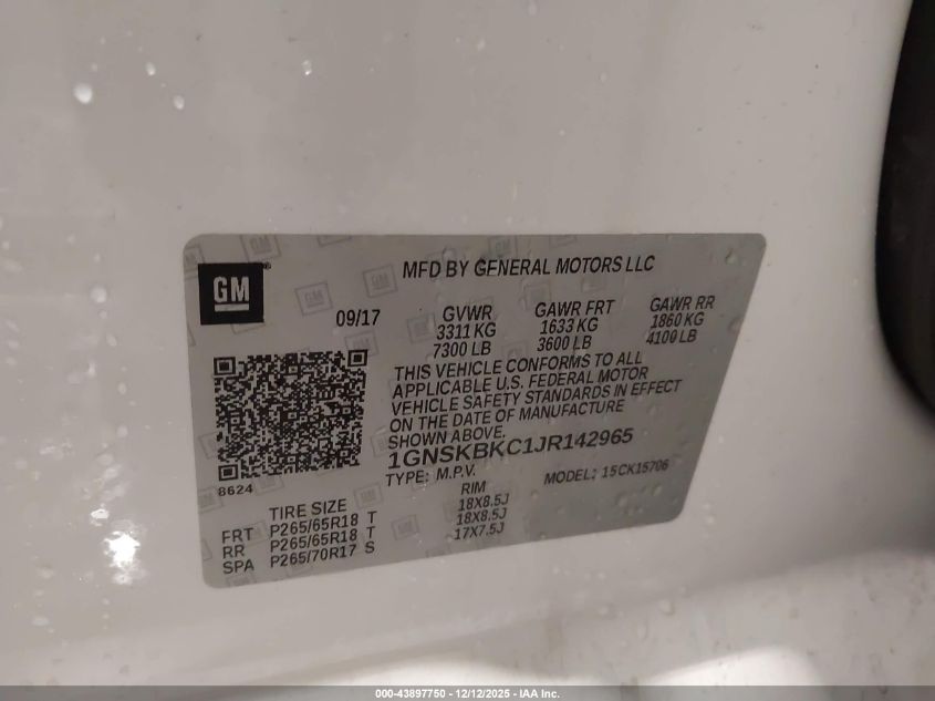 2018 CHEVROLET TAHOE 2018 року Бензин, 5.3, Полный привод, vin - 1GNSKBKC1JR142965 из США