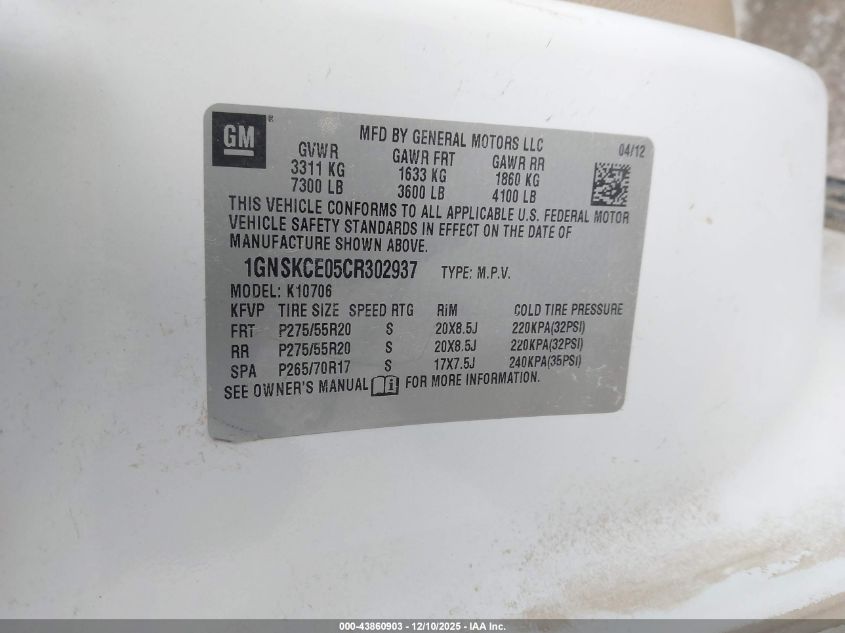 2012 CHEVROLET TAHOE K1500 LTZ