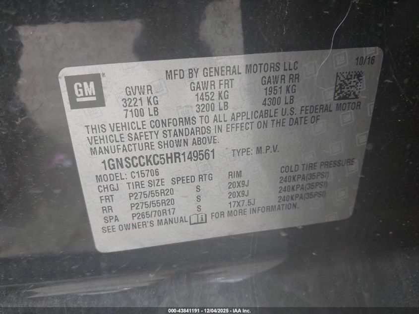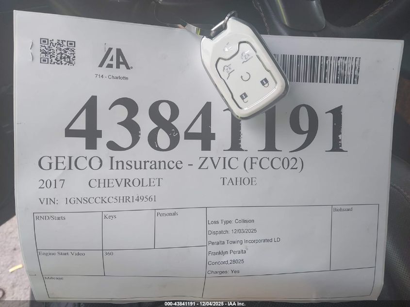 2017 CHEVROLET TAHOE 2017 року Бензин, 5.3, , vin - 1GNSCCKC5HR149561 из США