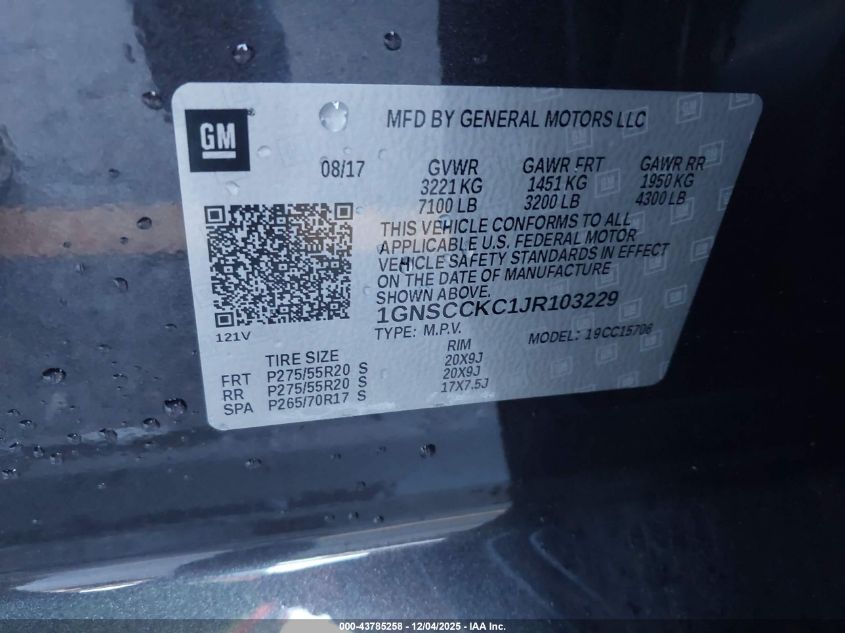 Цвет СерыйЦилиндры 8VIN 1GNSCCKC1JR103229Состояние Заводится и едет (проверено)Повреждения Передняя или задняя AutoRIA