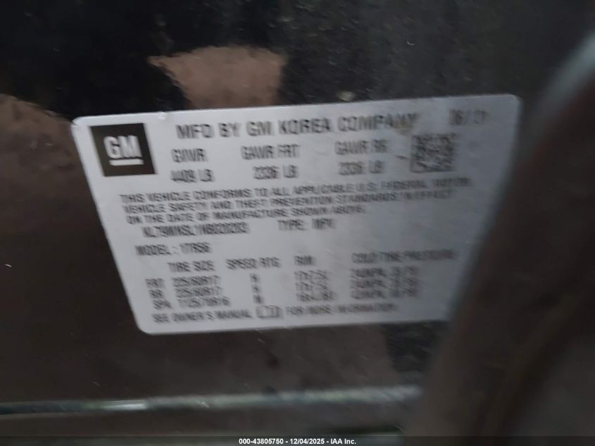 Цвет ЧерныйЦилиндры 3Привод Полный приводVIN KL79MNSL1NB020203Состояние СтационарноПовреждения Передняя или задняя AutoRIA