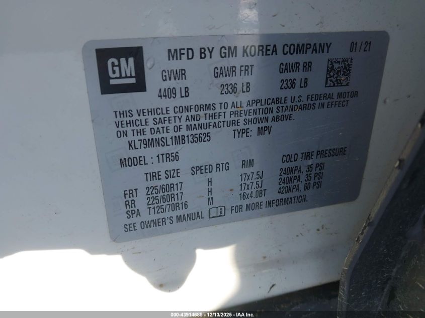2021 CHEVROLET TRAILBLAZER 2021 року Бензин, 1.3, Полный привод, vin - KL79MNSL1MB135625 из США
