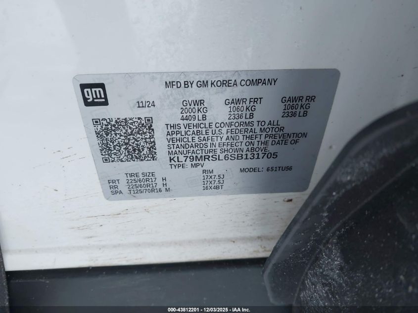2025 CHEVROLET TRAILBLAZER 2025 року Бензин, 1.3, Полный привод, vin - KL79MRSL6SB131705 из США