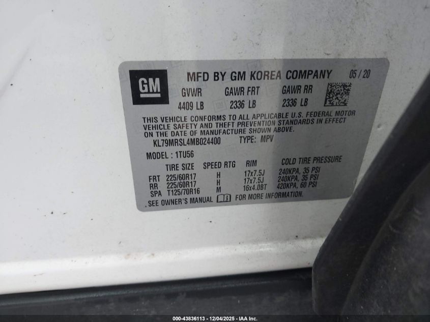 2021 CHEVROLET TRAILBLAZER 2021 року Бензин, 1.3, Полный привод, vin - KL79MRSL4MB024400 из США