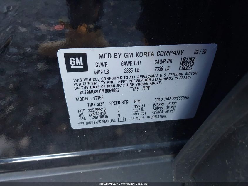 2021 CHEVROLET TRAILBLAZER 2021 року Бензин, 1.3, Полный привод, vin - KL79MUSL0MB059082 из США