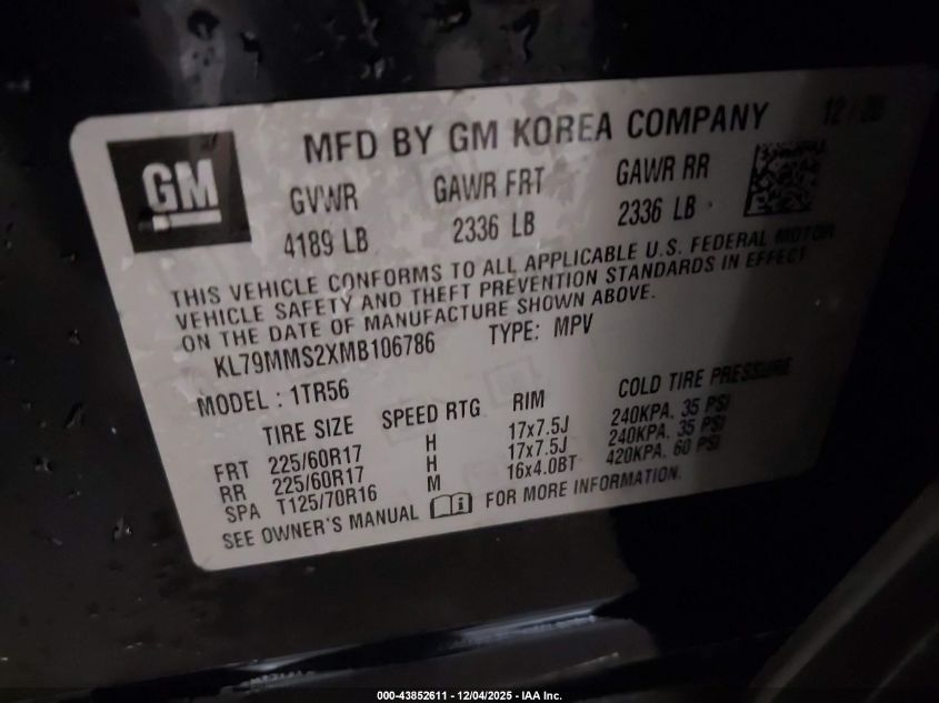 2021 CHEVROLET TRAILBLAZER 2021 року Бензин, 1.2, Передний привод, vin - KL79MMS2XMB106786 из США