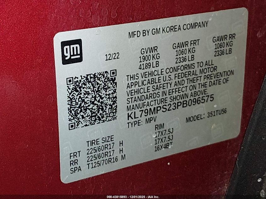 2023 CHEVROLET TRAILBLAZER 2023 року Бензин, 1.2, Передний привод, vin - KL79MPS23PB096575 из США