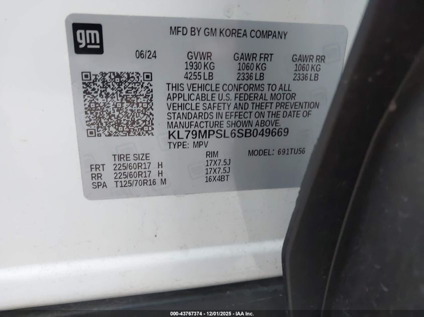 2025 CHEVROLET TRAILBLAZER 2025 року Бензин, 1.3, Передний привод, vin - KL79MPSL6SB049669 из США