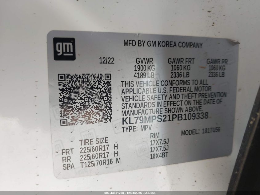 2023 CHEVROLET TRAILBLAZER 2023 року Бензин, 1.2, Передний привод, vin - KL79MPS21PB109338 из США