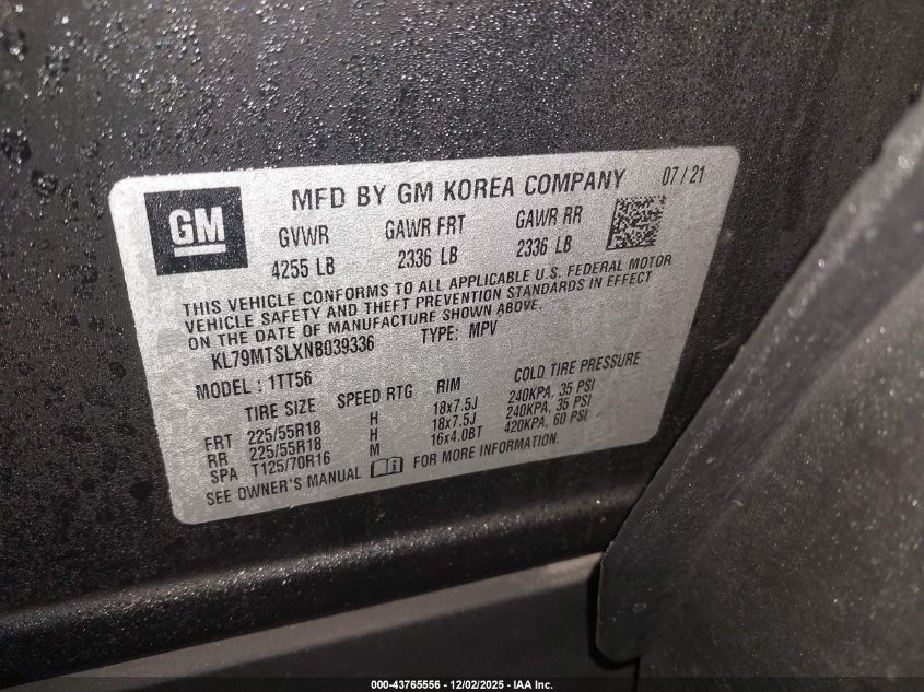 2022 CHEVROLET TRAILBLAZER 2022 року Бензин, 1.3, Передний привод, vin - KL79MTSLXNB039336 из США