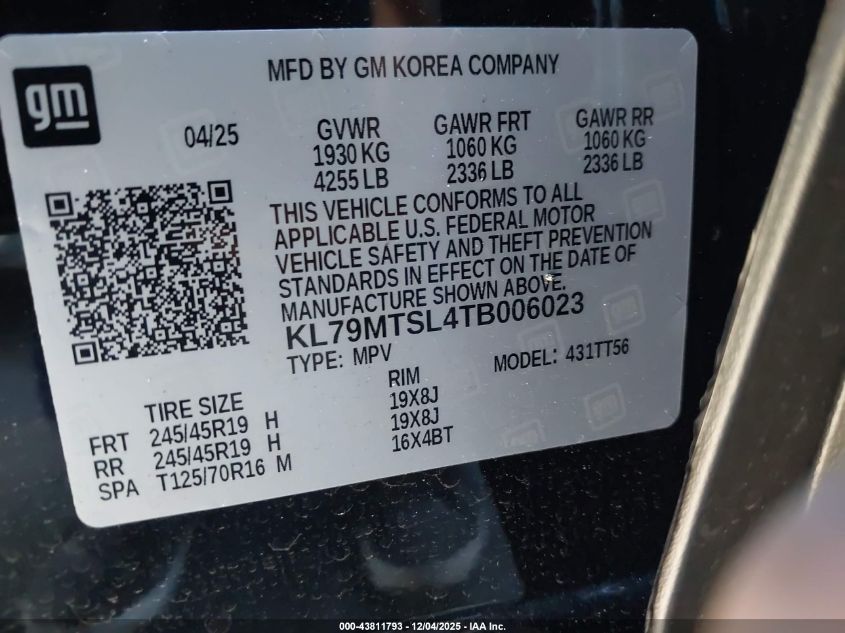 2026 CHEVROLET TRAILBLAZER 2026 року Бензин, 1.3, Передний привод, vin - KL79MTSL4TB006023 из США