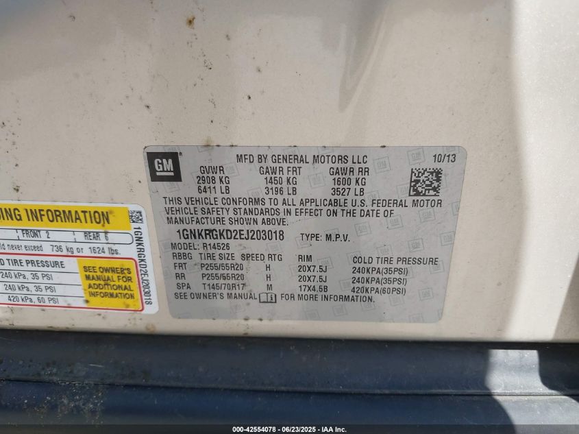 Цвет БежевыйЦилиндры 6Привод Передний приводVIN 1GNKRGKD2EJ203018Состояние СтационарноПовреждения Правая сторонаДата аукциона 2025-12-10 AutoRIA