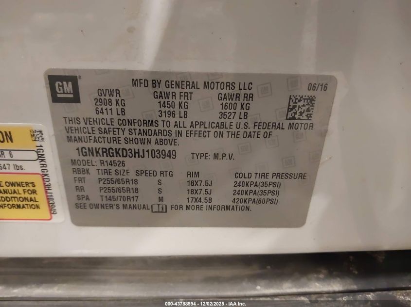 Цвет БелыйЦилиндры 6Привод Передний приводVIN 1GNKRGKD3HJ103949Состояние Заводится и едет (проверено)Повреждения Передняя или задняя AutoRIA