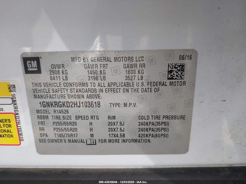 Цвет БелыйЦилиндры 6Привод Передний приводVIN 1GNKRGKD2HJ103618Состояние СтационарноПовреждения Передняя левая AutoRIA