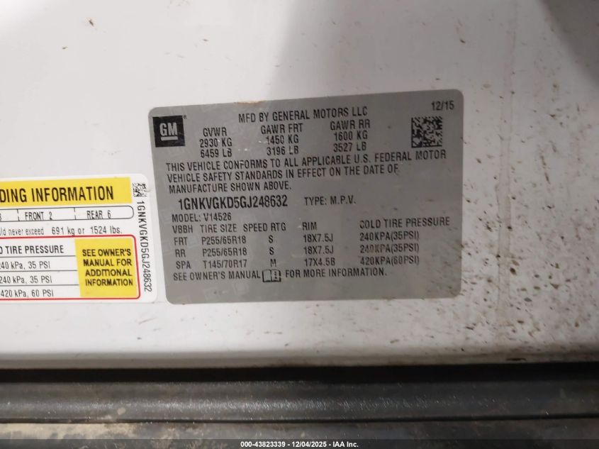Цвет БелыйЦилиндры 6Привод Полный приводVIN 1GNKVGKD5GJ248632Состояние Заводится и едет (проверено)Повреждения Передняя или задняя AutoRIA