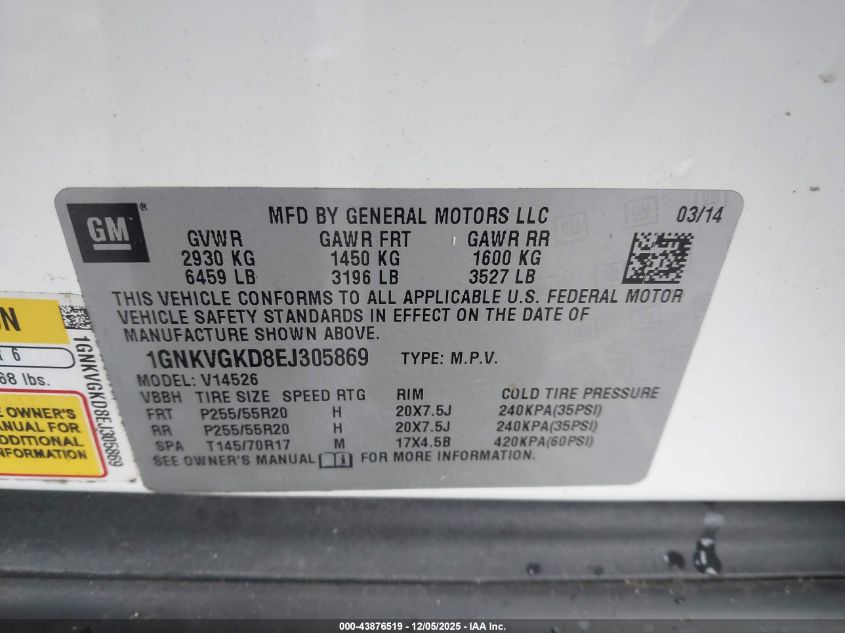 2014 CHEVROLET TRAVERSE 2014 року Бензин, 3.6, Полный привод, vin - 1GNKVGKD8EJ305869 из США