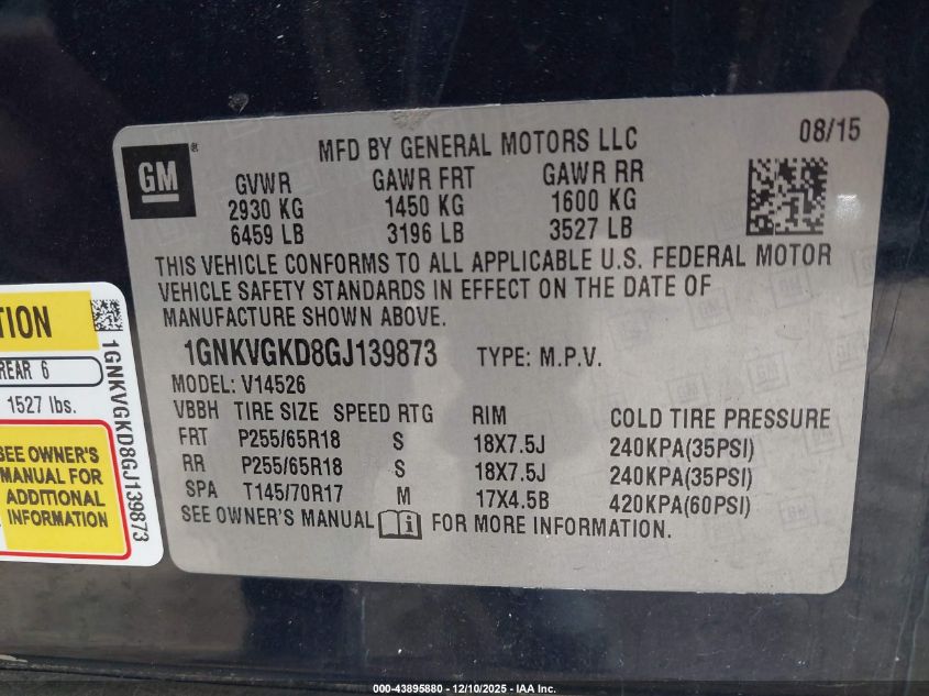2016 CHEVROLET TRAVERSE 2016 року Бензин, 3.6, Полный привод, vin - 1GNKVGKD8GJ139873 из США