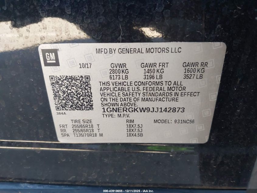 2018 CHEVROLET TRAVERSE HIGH COUNTRY