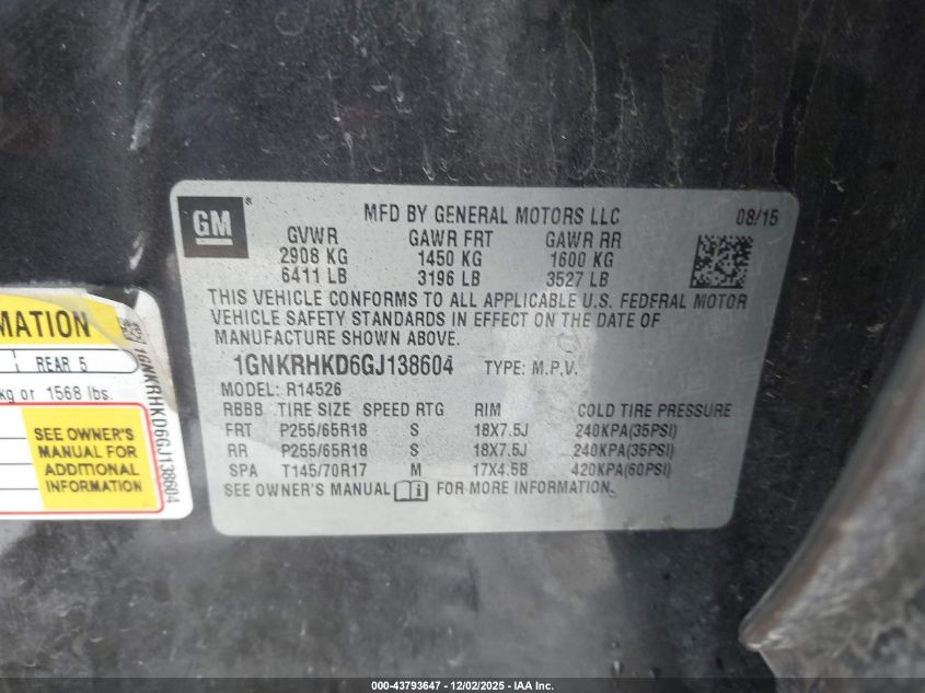 Цвет ЧерныйЦилиндры 6Привод Передний приводVIN 1GNKRHKD6GJ138604Состояние Заводится и едет (проверено)Повреждения Передняя или задняя AutoRIA
