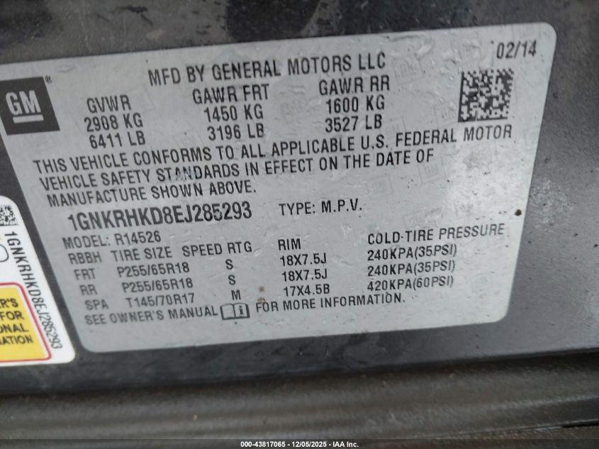 Цвет СерыйЦилиндры 6Привод Передний приводVIN 1GNKRHKD8EJ285293Состояние Заводится и едет (проверено)Повреждения Передняя левая AutoRIA