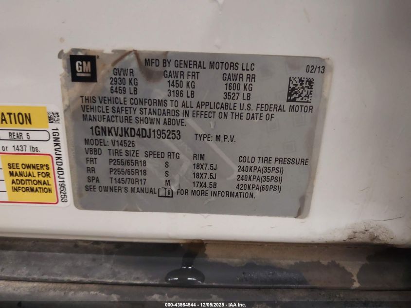 2013 CHEVROLET TRAVERSE 2013 року Бензин, 3.6, Полный привод, vin - 1GNKVJKD4DJ195253 из США
