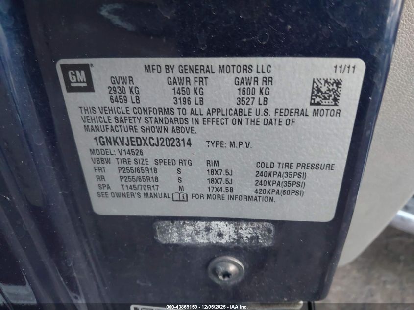 2012 CHEVROLET TRAVERSE 2012 року Бензин, 3.6, Полный привод, vin - 1GNKVJEDXCJ202314 из США