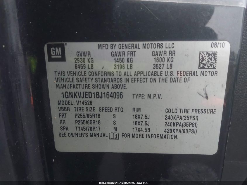 2011 CHEVROLET TRAVERSE 2011 року Бензин, 3.6, Полный привод, vin - 1GNKVJED1BJ164096 из США