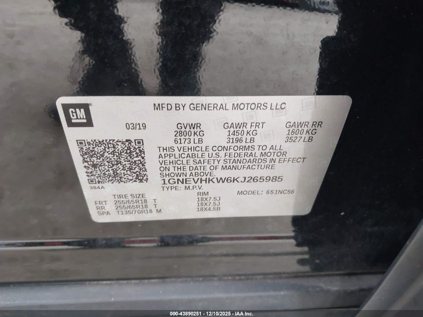2019 CHEVROLET TRAVERSE 2019 року Бензин, 3.6, Полный привод, vin - 1GNEVHKW6KJ265985 из США