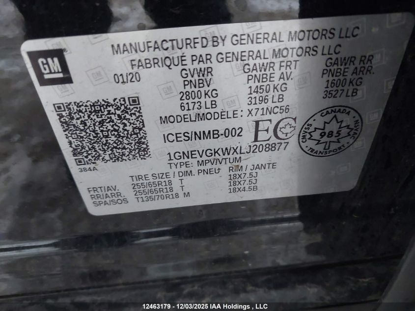 2020 CHEVROLET TRAVERSE 2020 року Бензин, , Полный привод, vin - 1GNEVGKWXLJ208877 из США