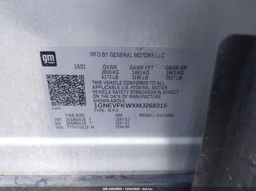 2021 CHEVROLET TRAVERSE 2021 року Бензин, 3.6, Полный привод, vin - 1GNEVFKWXMJ268315 из США