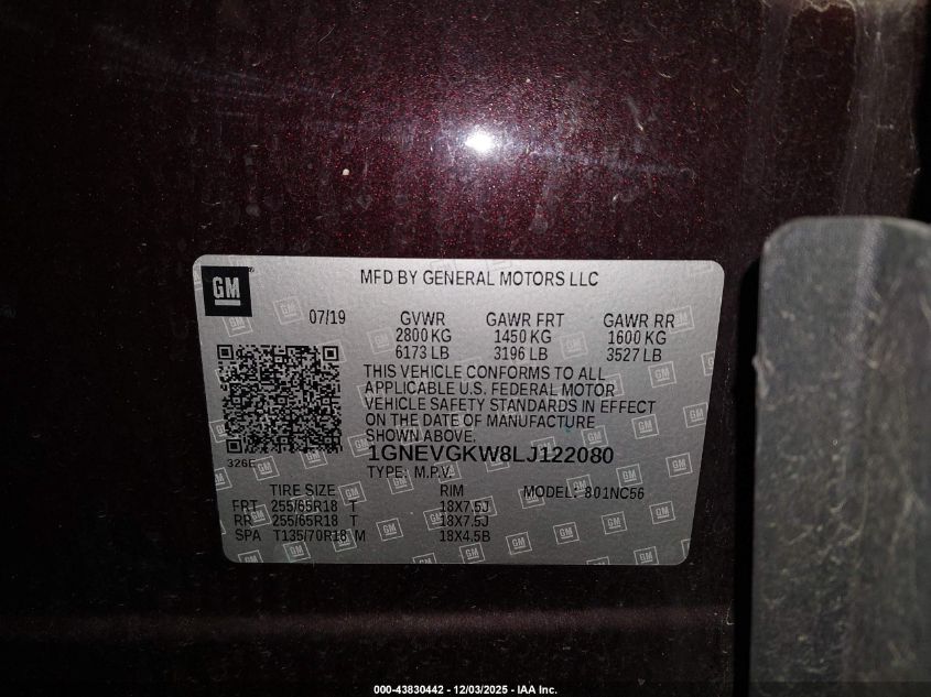 2020 CHEVROLET TRAVERSE LT