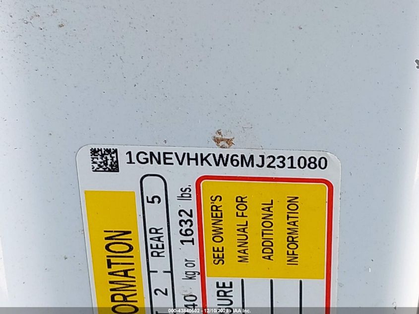 2021 CHEVROLET TRAVERSE 2021 року Бензин, 3.6, Полный привод, vin - 1GNEVHKW6MJ231080 из США