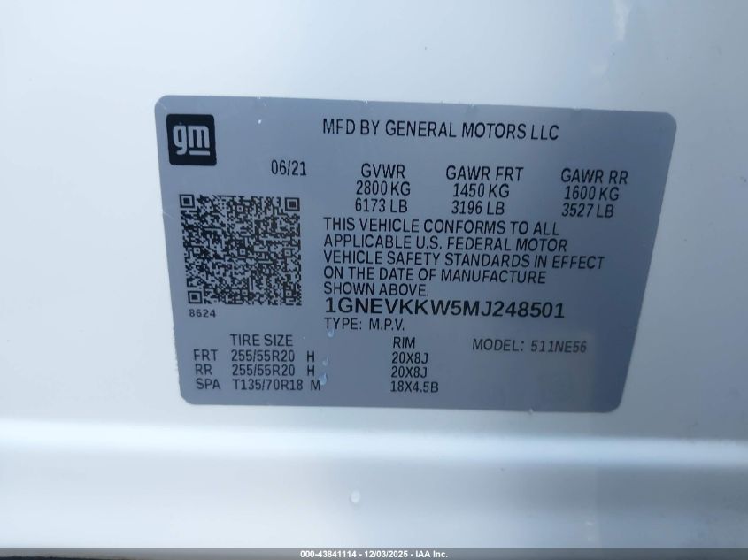 2021 CHEVROLET TRAVERSE 2021 року Бензин, 3.6, Полный привод, vin - 1GNEVKKW5MJ248501 из США