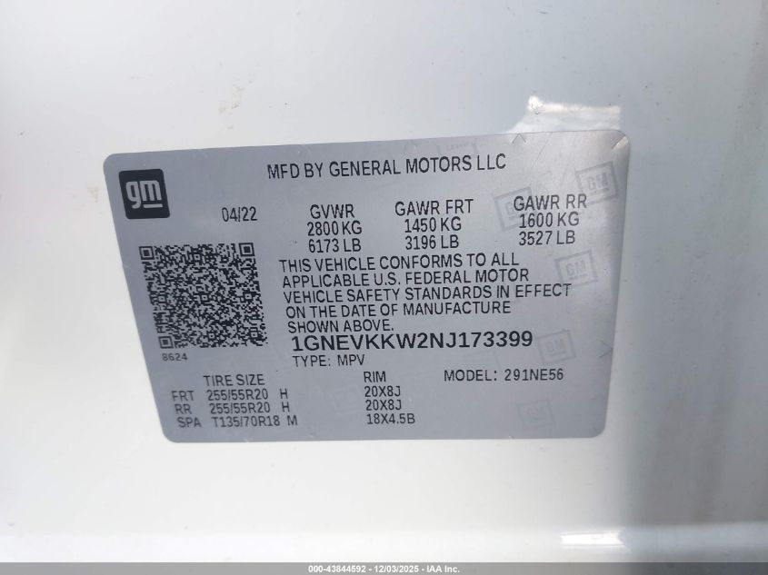 2022 CHEVROLET TRAVERSE 2022 року Бензин, 3.6, Полный привод, vin - 1GNEVKKW2NJ173399 из США