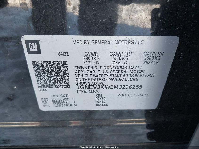 2021 CHEVROLET TRAVERSE 2021 року Бензин, 3.6, Полный привод, vin - 1GNEVJKW1MJ206255 из США