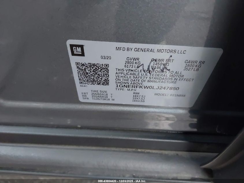 2020 CHEVROLET TRAVERSE 2020 року Бензин, 3.6, Передний привод, vin - 1GNERFKW0LJ247850 из США