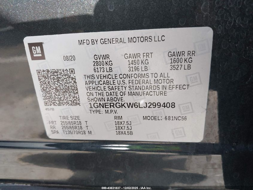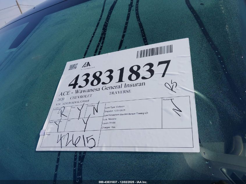 2020 CHEVROLET TRAVERSE 2020 року Бензин, 3.6, Передний привод, vin - 1GNERGKW6LJ299408 из США