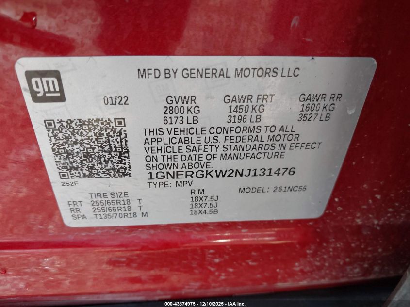 Цвет КрасныйЦилиндры 6Привод Передний приводVIN 1GNERGKW2NJ131476Состояние СтационарноПовреждения Передняя или задняя AutoRIA