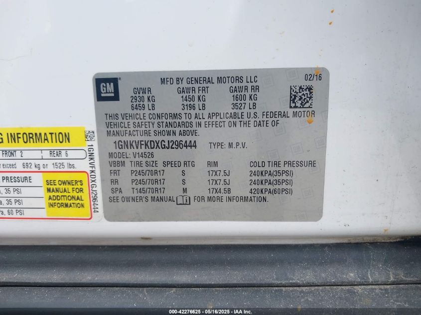 2016 CHEVROLET TRAVERSE 2016 року Бензин, 3.6, Полный привод, vin - 1GNKVFKDXGJ296444 из США