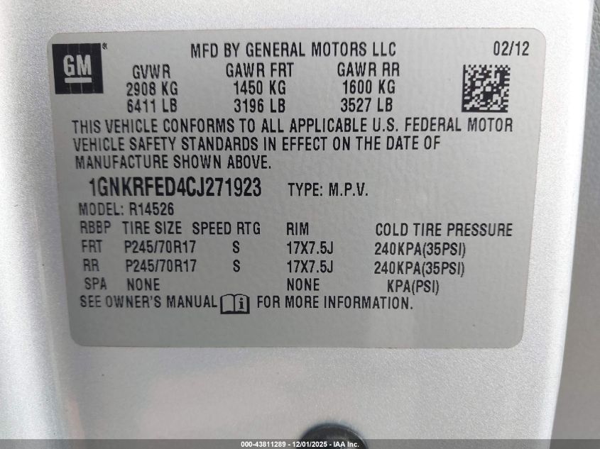 Цвет СеребряныйЦилиндры 6Привод Передний приводVIN 1GNKRFED4CJ271923Состояние Заводится и едет (проверено)Повреждения Передняя или задняя AutoRIA