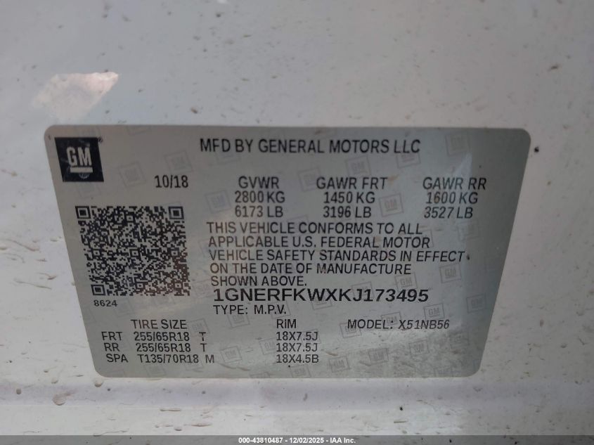 2019 CHEVROLET TRAVERSE 2019 року Бензин, 3.6, Передний привод, vin - 1GNERFKWXKJ173495 из США