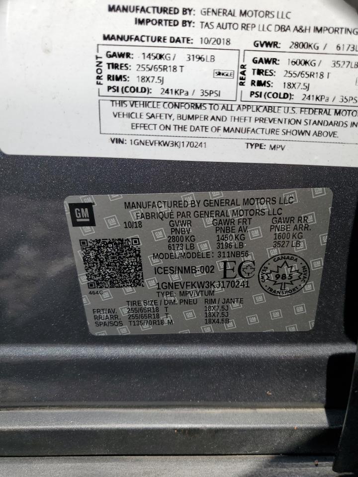 2019 CHEVROLET TRAVERSE 2019 року Бензин, 3.6, Полный привод, vin - 1GNEVFKW3KJ170241 из США